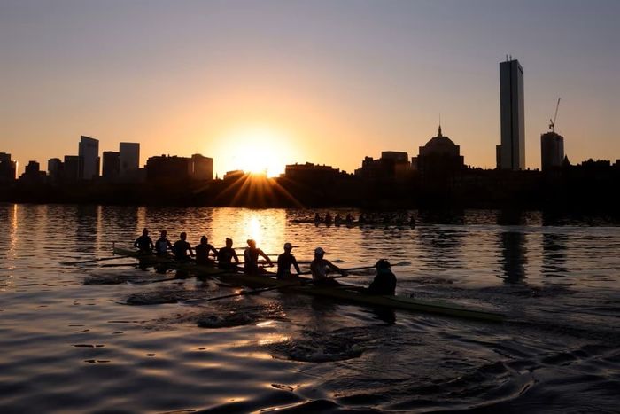 Đội nữ của CLB đua thuyền Harvard-Radcliffe đang rèn luyện trên dòng sông Charles, thành phố Boston, tiểu bang Massachusetts, Mỹ. Họ đang hăng hái tập luyện để chuẩn bị tham gia giải đua thuyền Head of the Charles Regatta, sẽ diễn ra cuối tháng 10 tại Cambridge, tiểu bang Massachusetts.