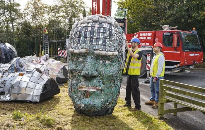 Cùng khám phá những tác phẩm chân dung độc đáo của các nhà lãnh đạo quốc gia, được làm từ rác tái chế bởi Mutoid Waste Company. Chân dung của Tổng thống Mỹ Joe Biden, hiện đang được bảo quản tại Eden Project, ở Par, Vương quốc Anh. Ảnh chụp vào ngày 13/10.