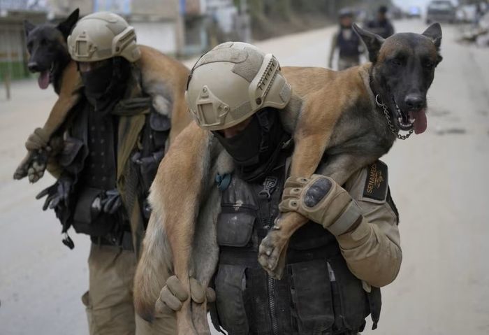 Đội tìm kiếm cứu hộ ở Las Tejerias, Venezuela, đang triển khai chó nghiệp vụ tới hiện trường sạt lở đất để tìm kiếm những nạn nhân mất tích do thiên tai xảy ra trong khu vực vài ngày trước đó. Ít nhất 40 người đã thiệt mạng. Bức ảnh được chụp vào ngày 11/10.
