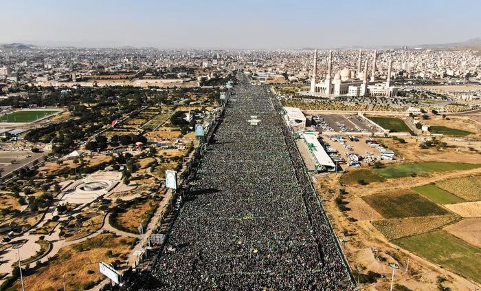 Cư dân tại Sana'a, Yemen, đồng lòng tụ tập để ăn mừng ngày sinh của người Muhammad. Bức ảnh này được chụp vào ngày 8/10.