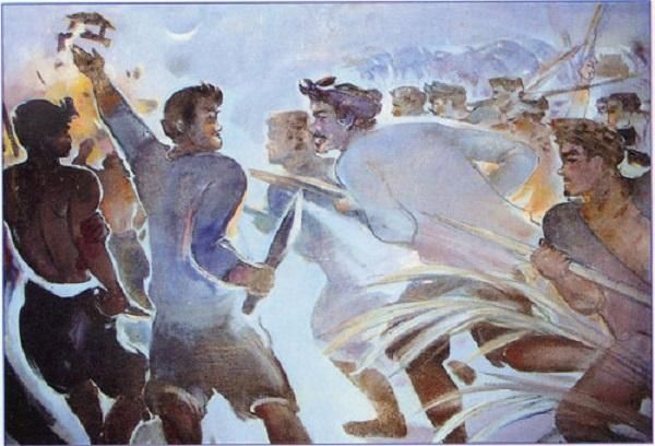 Cầm trên tay những vũ khí thô sơ như "manh áo vải", "ngọn tầm vông", họ chiến đấu với tinh thần quật cường. Dù phải đối mặt với kẻ thù có sức mạnh vượt trội, họ vẫn tỏ ra không nao núng: "Kẻ đâm ngang, người chém ngược, làm cho mã tà ma ní hồn kinh".