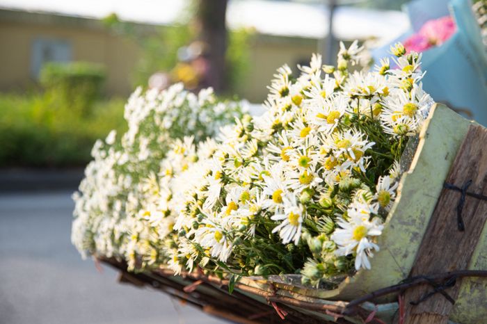 Mẹ em luôn chọn những bông hoa cúc chưa nở hoàn toàn, để đến đầu năm mới, chúng sẽ bắt đầu khoe sắc. Khi đó, cánh hoa chưa mở hết, chúng tụ tập lại nhau như che giấu một điều gì đó bên trong. Mẹ em thường đặt chúng trong nước sạch và tỉa bớt những phần không cần thiết.