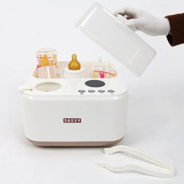 - The versatile Sassy 320E sterilizer and warmer is designed with high-quality, BPA-free plastic for safety.