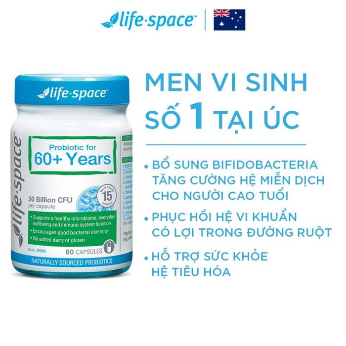 Australian Probiotic Men for Adults Life Space 60+ Probiotic is specially developed for the elderly. It provides high-quality live probiotics (15 beneficial bacterial strains) that are gradually depleted in people aged 60+. When entering the digestive system, probiotics will balance the gut microbiota and bring health benefits to users.
