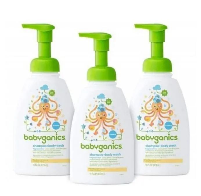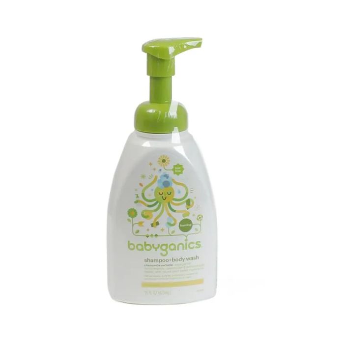 - Babyganics Newborn Foaming Wash gently cleanses your baby’s skin and hair without causing eye irritation or any adverse effects. This 2-in-1 formula allows you to safely bathe and shampoo your baby at once.