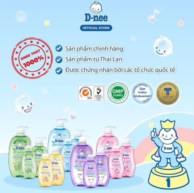 Babies often have delicate and sensitive skin, which is why mothers need a gentle organic shower gel. D-nee Organic Baby Shower Gel is suitable for newborns and contains 7 natural extracts that nourish the baby's skin and hair, leaving them soft, smooth, and fresh every day. This product is clinically proven to be non-irritating, free from parabens, SLS, silicones, alcohol, and gluten, ensuring peace of mind for parents.