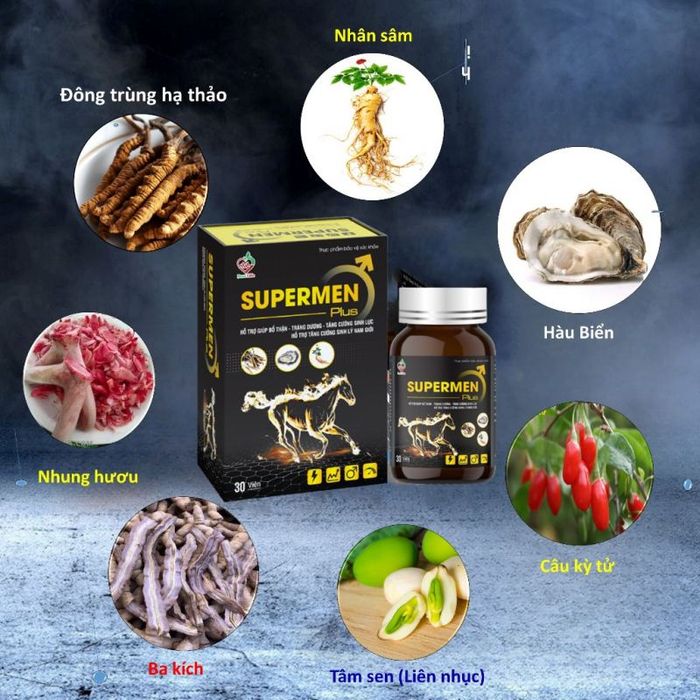 - Oyster Extract 500mg, L-Arginine HCl 200mg, L-Carnitine Fumarate 50mg, Seal Powder 200mg, Maca Root Extract 15mg, Ba Kich Extract 30mg, Epimedium Extract 30mg, Toa Yang Extract 30mg, Ginseng Extract 30mg, Cọ Lùn Extract 30mg, Cordyceps Powder 10mg, Zinc 10mg, Sea Cucumber Powder 5mg, Ginseng Powder 5mg.