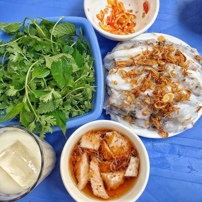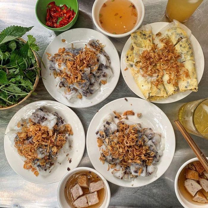 Unlike many other places where the rice rolls are simply wrapped around a meat filling and served with fish sauce, Cao Bang Steamed Rice Rolls Mai Yen offers a different experience. The rice rolls here are served with a bowl of savory broth made from simmered pork bones, providing a deep, natural sweetness. The dish is hearty, with a perfect balance of flavors, and the filling is crispy and flavorful. In addition to the rice rolls, the shop also serves bun lap suon (vermicelli with grilled pork), which is another must-try. If you ever find yourself in the area, don't miss out on trying the Cao Bang rice rolls, a local specialty!