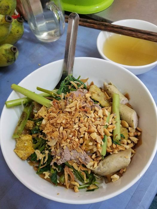 If you’re a fan of mixed dishes, you can’t miss Meo Ngo Eatery, a popular spot for Hanoi-style bánh đa trộn. This street-side eatery has earned a great reputation over time and continues to be loved by many. Although it's a modest place, it’s always clean and well-ventilated, and the owner’s attentive service rivals that of any high-end restaurant. The bánh đa trộn here is packed with a variety of ingredients like fish cakes, tofu, meat, shrimp, herbs, and peanuts, all harmonizing to create a flavor that's hard to forget. This spot has consistently delighted even the pickiest of customers.