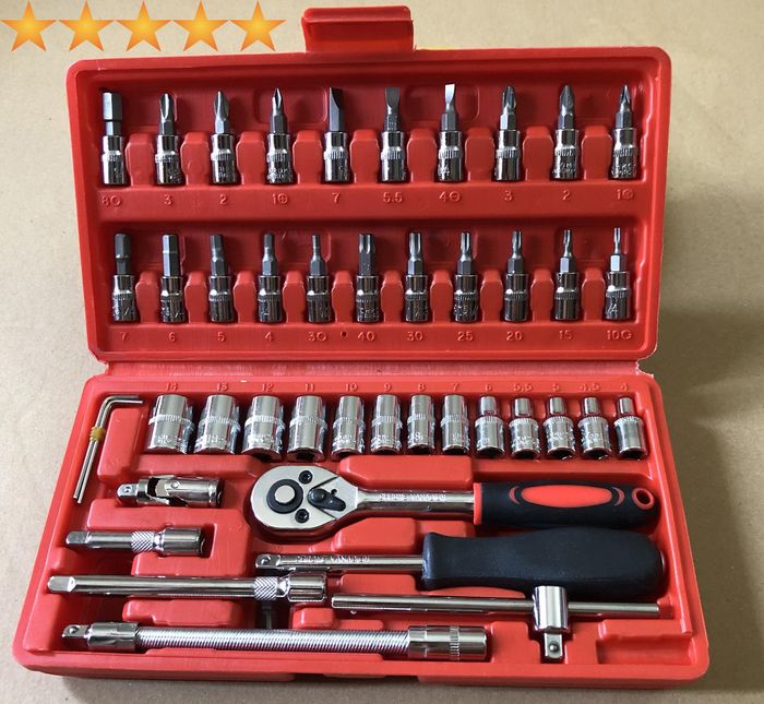 Bộ dụng cụ sửa xe máy chất lượng cao với 46 chi tiết đa dạng, làm từ thép không gỉ chống ăn mòn. Đầu cầm bằng nhựa bền chắc, giúp sửa chữa dễ dàng. Sản phẩm được sắp xếp gọn gàng trong hộp nhựa chắc chắn, không thể thiếu trong xưởng cơ khí, tiệm sửa xe máy chuyên nghiệp hoặc trong gia đình.