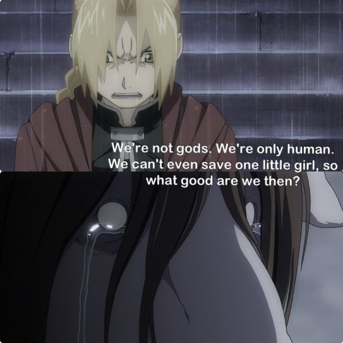 “Một bài học mà không có đau đớn thì vô nghĩa. Bạn không thể đạt được điều gì mà không hy sinh một thứ gì đó. Nhưng khi bạn khôi phục và biến nó thành của mình... Bạn sẽ có được một trái tim Fullmetal không thể thay thế.'