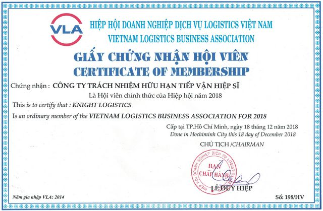 ✈ CÔNG TY TNHH KNIGHT LOGISTICS được thành lập vào tháng 6 năm 2004, với sứ mệnh cung cấp cho các nhà xuất nhập khẩu tại Việt Nam các dịch vụ logistics tiên tiến và sáng tạo nhất. Chúng tôi tự hào với triết lý kinh doanh “You Point, We Deliver”, trong đó sự hài lòng của khách hàng luôn là ưu tiên hàng đầu, và chúng tôi cam kết làm hài lòng khách hàng qua từng dịch vụ của mình. Với hơn 15 năm kinh nghiệm trong ngành Logistics, đội ngũ nhân viên của KNIGHT LOGISTICS làm việc với tinh thần "Tận tụy, Nhanh chóng, Chính xác và Sáng tạo", nhằm mang đến những dịch vụ logistics chất lượng, giá cả hợp lý và đáng tin cậy cho các khách hàng và đối tác. KNIGHT LOGISTICS còn nổi bật với các đặc điểm như: ➤ Là đại lý chính thức thực hiện thủ tục hải quan tại Việt Nam. ➤ Sở hữu giấy phép vận tải đa phương thức - Multimodal Transport Operator License. ➤ Là đại lý chính thức của Hiệp hội Vận tải Hàng không Quốc tế (IATA) số #37300350006. ➤ Phương tiện vận tải đa dạng, luôn sẵn sàng phục vụ nhu cầu khách hàng. ➤ Đội ngũ nhân viên chuyên nghiệp, nhiệt huyết, luôn tận tâm và tận lực với khách hàng. ➤ Môi trường làm việc chuyên nghiệp với không gian thoáng đãng và thân thiện, giúp nhân viên làm việc hiệu quả và sáng tạo. ✈ KNIGHT LOGISTICS cam kết bảo đảm tài chính và trách nhiệm đối với khách hàng, với hợp đồng bảo hiểm trách nhiệm nghề nghiệp (Performance Liability Insurance – including Errors & Omissions) trị giá 1,000,000 USD ký kết với công ty bảo hiểm uy tín Lloyds Insurance. ✈ Chúng tôi có mạng lưới văn phòng tại các cửa khẩu lớn, xử lý tất cả lô hàng tại Việt Nam và hệ thống đại lý trên toàn thế giới. ✈ Các đối tác lớn của chúng tôi bao gồm: + Ngành hàng không: AirFrance, Vietnamairlines, China Airlines, Vietjet, Jestar, Korean Air, Dragon Air, FinnAir, China Southern, Singapore Airlines,.. + Ngành vận tải biển: ONE, CMA, MAERSK, HAPAG-LLOYD, EVERGREEN, MSC, COSCO, PIL,.. + Ngành chuyển phát: DHL, TNT, FedExpress,.. + Bảo hiểm hàng hóa: Chubb Life KNIGHT LOGISTICS không ngừng phát triển để đóng góp tích cực cho ngành Logistics tại Việt Nam, cam kết mang đến dịch vụ chất lượng và uy tín hàng đầu. Đến với chúng tôi, khách hàng sẽ trải nghiệm dịch vụ logistics chuyên nghiệp và hiệu quả nhất. ✈ Địa chỉ công ty: Lầu 7 Toà Nhà Kicotrans, 46 Bạch Đằng, Phường 2, Quận Tân Bình, TP. Hồ Chí Minh, Việt Nam. ✈ Các sản phẩm và dịch vụ của chúng tôi bao gồm: - Tư vấn các chế độ ưu đãi thuế phù hợp - Tư vấn áp mã số HS cho từng mặt hàng - Xin cấp phép đối với hàng hóa có điều kiện - Tư vấn hồ sơ và quy trình trước khi khai quan - Thủ tục hải quan hàng quá cảnh, hàng kinh doanh, hàng nhập đầu tư, hàng phi mậu dịch, hàng hội chợ triển lãm, hàng tạm nhập tái xuất, hàng tạm xuất tái nhập, hàng xuất nhập khẩu tại chỗ, hàng hành lý tài sản di chuyển, hàng gia công sản xuất xuất khẩu, hàng phục vụ an ninh quốc phòng - Dịch vụ vận chuyển container nội địa, di dời thiết bị nhà xưởng, hàng lẻ, hàng rời, máy móc, hàng lạnh, hàng nguy hiểm bằng đường biển; hàng khô, tươi sống, may mặc, giá trị cao, thủy hải sản đông lạnh, động vật sống bằng đường hàng không - Giấy phép nhập khẩu bánh kẹo, hóa chất, chứng nhận xuất xứ hàng hóa, công bố mỹ phẩm nhập khẩu, dán nhãn năng lượng, vệ sinh an toàn thực phẩm - Vận chuyển door to door bằng đường bộ, biển, hàng không - Thủ tục hải quan hàng quá cảnh từ Lào và Campuchia đi các nước và ngược lại - Dịch vụ hàng mẫu, hàng hóa nhỏ, hàng cá nhân, quà tặng, số lượng ít, bảo hiểm, và các dịch vụ kho bãi và đóng gói ✈ Chúng tôi hoạt động trên toàn quốc và quốc tế với các chứng nhận IATA, FIATA, GTO, VLA, WCA.
