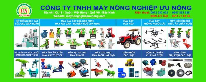Công ty TNHH Máy Nông Nghiệp Ưu Nông - Địa chỉ tin cậy cho các sản phẩm và dịch vụ máy nông nghiệp chất lượng cao, phục vụ cho sự phát triển bền vững của nông nghiệp.