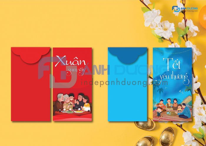 Xưởng In Ánh Dương nhận in và thiết kế bao lì xì theo yêu cầu với số lượng lớn hoặc ít, cam kết giá tốt nhất. Quy trình in nhanh chóng, khách hàng có thể nhận sản phẩm sau 24h nếu có sẵn mẫu thiết kế hoặc sử dụng mẫu tại xưởng.