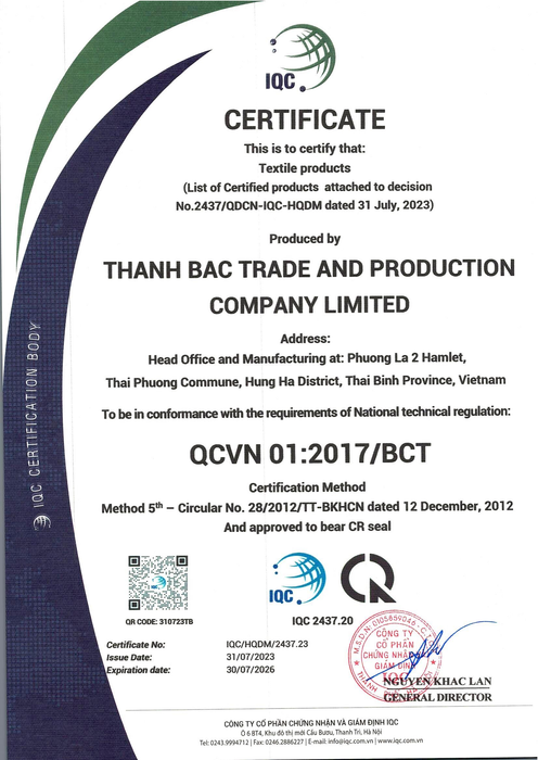 Khăn Bông Quang Minh - Thương hiệu khăn bông xuất khẩu hàng đầu trên thị trường! Công Ty TNHH Dệt May Xuất Khẩu Quang Minh, tọa lạc tại Cụm Công Nghiệp Thái Phương, Xã Thái Phương, Huyện Hưng Hà, Thái Bình, Việt Nam, tự hào là đối tác chuyên sản xuất và xuất khẩu các sản phẩm khăn bông cao cấp với nhiều năm kinh nghiệm. Xuất phát điểm từ làng Mẹo, một làng nghề có tiếng trong ngành dệt tại Việt Nam, Quang Minh hiện nay đã mở rộng thị trường xuất khẩu sang nhiều quốc gia lớn như Nhật Bản, Mỹ, Singapore, Hàn Quốc và nhiều quốc gia khác. Sản phẩm của chúng tôi gồm: - Khăn Oshibori 34x40cm, 30x40cm, 30x30cm, 28x28cm các loại - Khăn Jaquard - Khăn bông xuất khẩu Nhật Bản, Mỹ, Hàn Quốc, Singapore - Khăn tắm và khăn spa các kích thước: 34x80cm, 34x86cm, 60x120cm, 60x130cm, 70x140cm - Khăn mặt, khăn bông thêu logo, khăn quà tặng, khăn lau kính, khăn bếp, khăn thể thao, khăn hạt na - Khăn bông thiết kế theo yêu cầu Chúng tôi tự hào với quy mô sản xuất lớn, đội ngũ gần 200 lao động, nhà máy khang trang với thiết bị nhập khẩu hiện đại, và kho chứa hàng có sức chứa từ 80 đến hơn 120 tấn. Sản phẩm của chúng tôi được kiểm định chất lượng rõ ràng, đáp ứng yêu cầu của những khách hàng khó tính nhất tại Nhật Bản và các đối tác nhà hàng, khách sạn trong nước. Chúng tôi cam kết sản xuất các đơn hàng lớn, có giá trị cao đúng tiến độ, 100% sản phẩm được dệt từ sợi bông tự nhiên, cao cấp, đảm bảo chất liệu mềm mịn, thấm hút tốt. Chúng tôi cũng cung cấp dịch vụ tư vấn miễn phí, giá cả hợp lý, và giao hàng nhanh chóng. Quang Minh rất mong có cơ hội hợp tác với các doanh nghiệp trong thời gian tới!