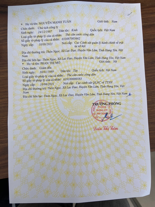 Thông tin khác: Văn Phòng: KDT. Phúc Thành, TT. Bần, Yên Nhân, Mỹ Hào, Hưng Yên