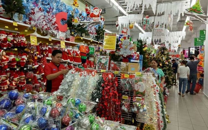 - Khu vực trang trí Giáng sinh có đủ mọi thứ: Cây thông, đèn trang trí, hộp quà, ông già Noel, quả châu và các phụ kiện khác...