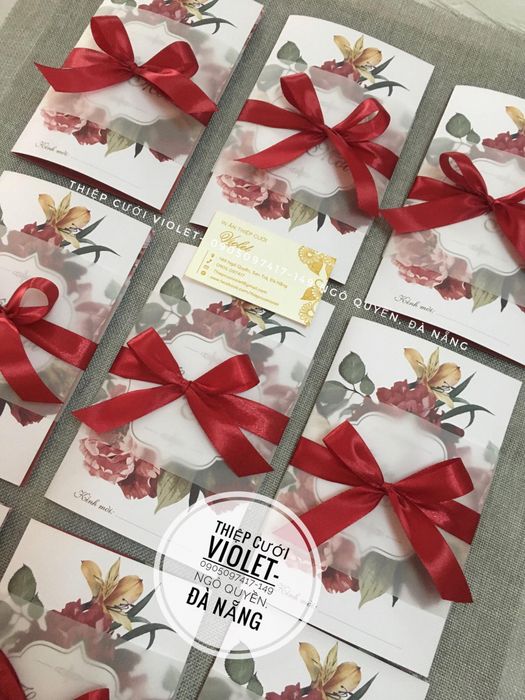 Studio Thiệp Cưới Violet Đà Nẵng cam kết cung cấp những mẫu thiệp đa dạng về màu sắc, chất liệu, và kiểu dáng thiết kế để đáp ứng mọi nhu cầu của khách hàng.