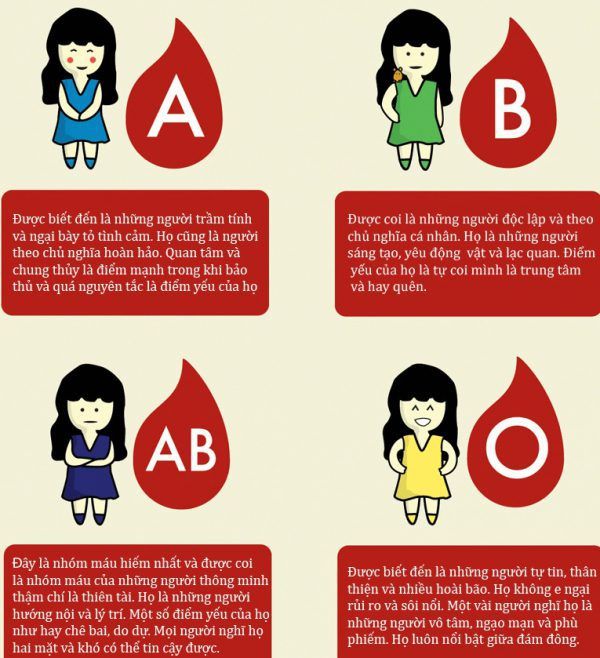 Người mang nhóm máu A được cho là lo lắng, nhóm máu AB thì hướng ngoại và hiếu chiến, nhóm máu O thân thiện và hòa đồng, còn nhóm máu B thường bị coi là vô cảm và theo chủ nghĩa cơ hội. Điều này không chỉ là một quirk văn hóa mà còn là tiêu chí để tự nhận thức và phát triển bản thân.