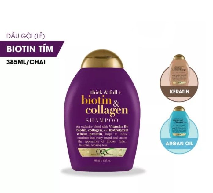 Dầu gội OGX Biotin Collagen của thương hiệu nổi tiếng Mỹ là sự kết hợp độc đáo giữa biotin và collagen, giúp bảo vệ và nuôi dưỡng tóc. Dưỡng chất này không chỉ ngăn chặn tình trạng rụng tóc mà còn kích thích mọc tóc, tăng cường sức sống và đàn hồi cho mái tóc. Với thành phần chứa biotin (vitamin B7), collagen và protein từ lúa mì, dầu gội này mang lại nguồn dưỡng chất cần thiết, giúp tóc trở nên mạnh mẽ, mềm mại và bồng bềnh.