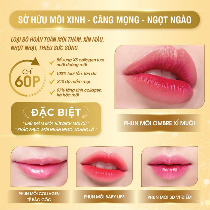 - Bạn sẽ có thể sở hữu ngay cho mình một dáng môi hồng hào, xinh xắn và quyến rũ ngay sau khi hoàn thành dịch vụ.