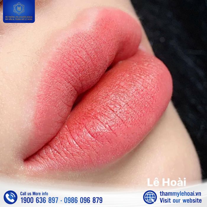 Thêm vào đó, với phương pháp này đôi môi của bạn còn được lưu giữ màu sắc tươi tắn hồng hào lâu hơn các phương pháp thông thường khác, không bị xỉn màu hay xuất hiện các vấn đề thâm khô trở lại. Ngoài ra, khi thực hiện quá trình phun môi tại Viện thẩm mỹ Lê Hoài các bạn sẽ cảm thấy an tâm hơn khi các chuyên viên có kĩ thuật tay nghề tỉ mỉ luôn đảm bảo quá trình phun môi sẽ diễn ra một cách thuận lợi vừa đảm bảo được đúng chuẩn quy trình làm đẹp vừa giúp cho các bạn cảm thấy thoải mái không bị đau trong quá trình thực hiện và không bị sưng sau khi hoàn thành.