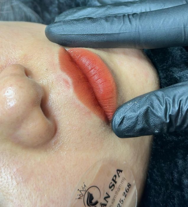 - Làm sạch vùng da vừa phun môi.