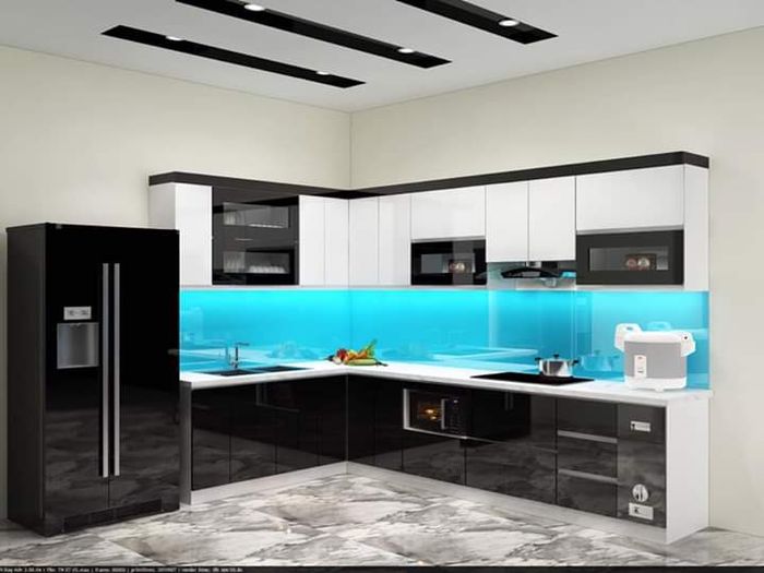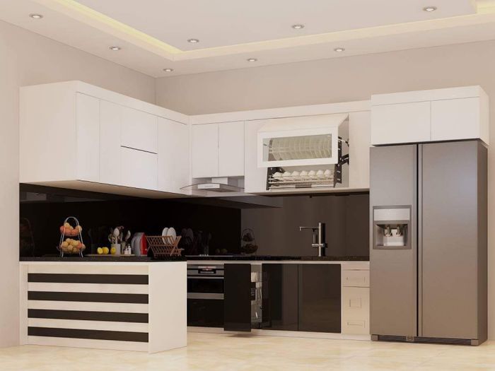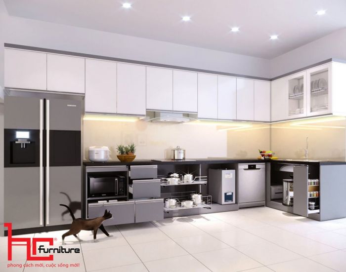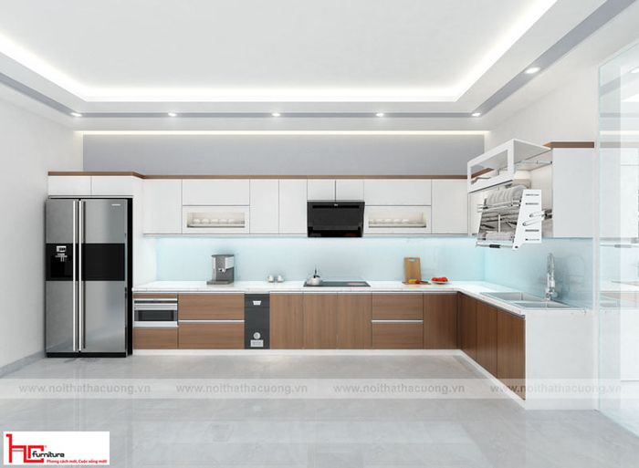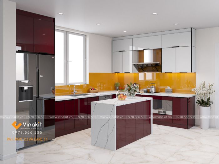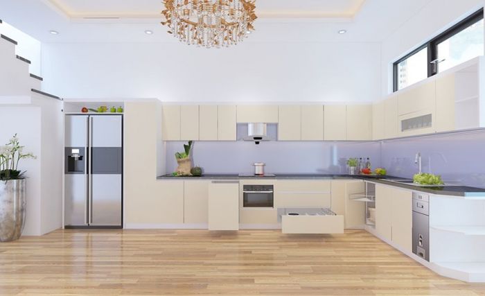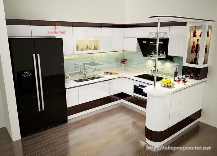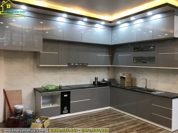 - Tủ bếp nhựa acrylic: phong cách Châu Âu, với đa dạng màu sắc bóng gương.