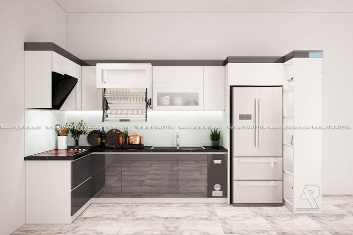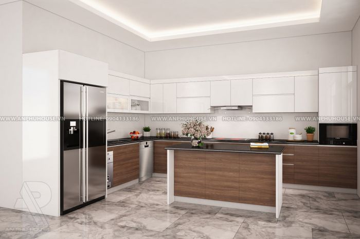 Cùng với đó, Nội thất An Phú có quy mô xưởng rộng hơn 600 m2, trang bị đầy đủ máy bàn trượt, máy dán cạnh tự động, máy CNC, phòng sơn đầy đủ và tiện nghi, không qua trung gian, không qua các bên thứ 3 nên đảm bảo đúng tiến độ và có đội ngũ thiết kế tủ bếp với kinh nghiệm trên 10 năm hoàn toàn đáp ứng được những yêu cầu thiết kế, thi công tủ bếp công năng đầy đủ, tiện nghi và hoàn hảo nhất.