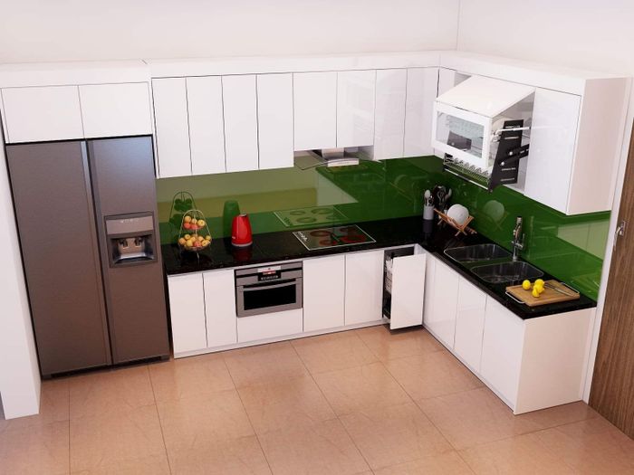 - Tủ bếp nhựa sơn men bóng ô tô: độ bền cao nhất, màu sắc hiện đại, dễ vệ sinh.
