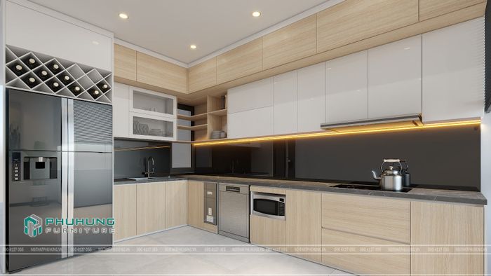 Nội thất Phú Hưng được nhiều khách hàng lựa chọn sử dụng dịch vụ thiết kế, thi công tủ bếp không chỉ đảm bảo về yếu tố công năng mà mỗi sản phẩm tủ bếp thi công luôn cung cấp giải pháp tổng thể không gian hợp lý nhất với điều kiện về diện tích, nhu cầu sử dụng, điều kiện kinh tế và được thực hiện bởi đội ngũ thiết kế, thi công dày dặn kinh nghiệm đem đến cho khách hàng tủ bếp bền đẹp.