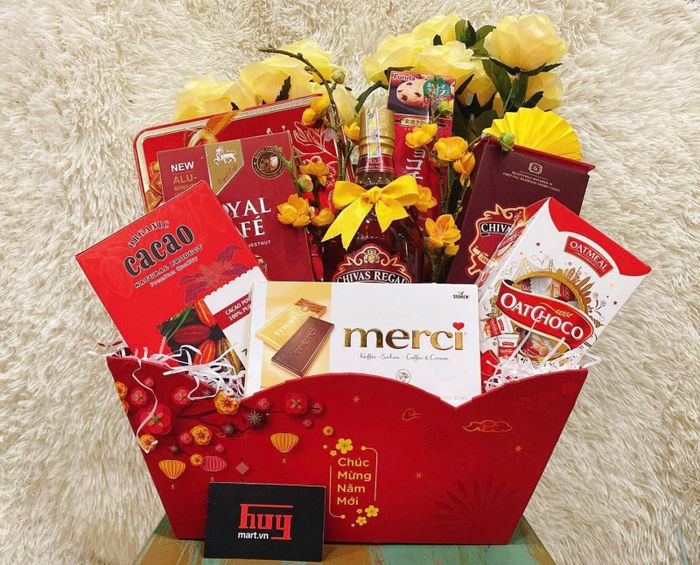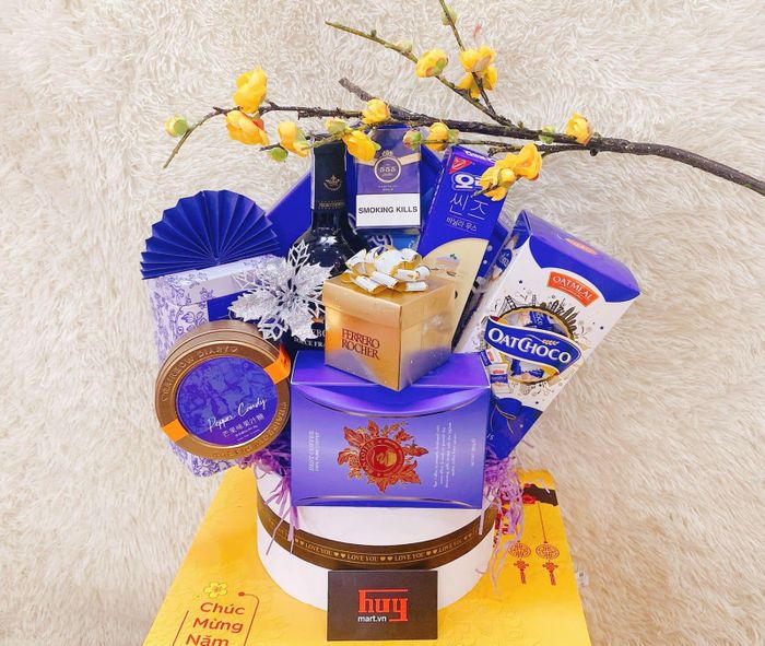 Huymart là địa chỉ mua sắm giỏ quà Tết chất lượng, uy tín và sang trọng từ hàng tiêu dùng cao cấp nhập khẩu. Huymart đang có những ưu đãi hấp dẫn như thiết kế set quà theo yêu cầu, miễn phí in logo doanh nghiệp, hỗ trợ vận chuyển toàn quốc, không dùng hàng cận date và nhận đơn lẻ từ 1 hộp đến 100.000 hộp. Đặc biệt, đóng giỏ nhanh chóng và không phụ thu phí đóng giỏ.