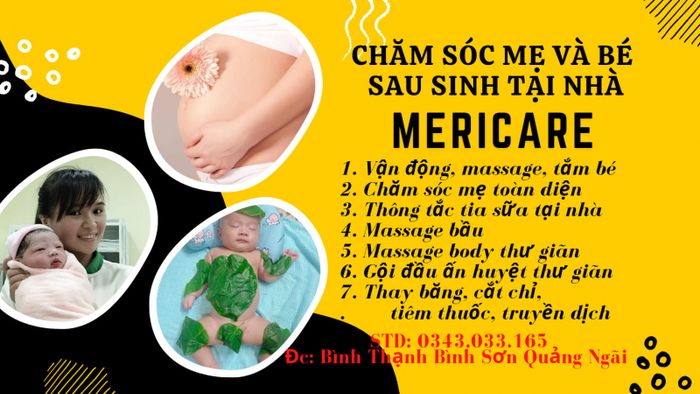 MeriCare Bình Sơn là địa chỉ uy tín về chăm sóc sau sinh tại Quảng Ngãi, nơi mang đến trải nghiệm chăm sóc sau sinh đẳng cấp, giúp mẹ bỉm sữa hồi phục sức khỏe, lấy lại vóc dáng và tự tin trở lại cuộc sống. Trung tâm cung cấp đa dạng dịch vụ chăm sóc sau sinh như massage sau sinh, tắm bé, tư vấn dinh dưỡng, và khóa học chăm sóc bé.