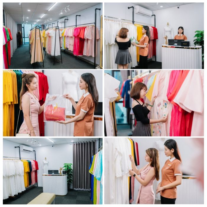 Tại cửa hàng, bạn sẽ được chọn lựa từ những mẫu áo dài độc đáo, từ áo dài trắng truyền thống cho đến những thiết kế màu sắc sôi động, phá cách. Đội ngũ tư vấn chuyên nghiệp sẽ giúp bạn tìm ra bộ áo phản ánh đúng nhất nét cá tính và phong cách riêng của bạn.