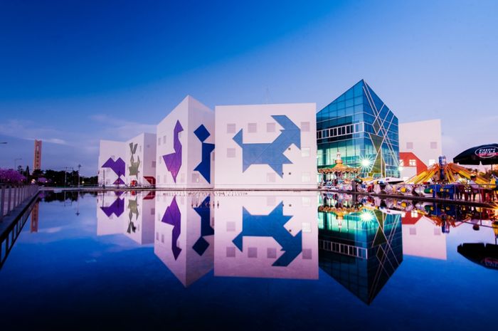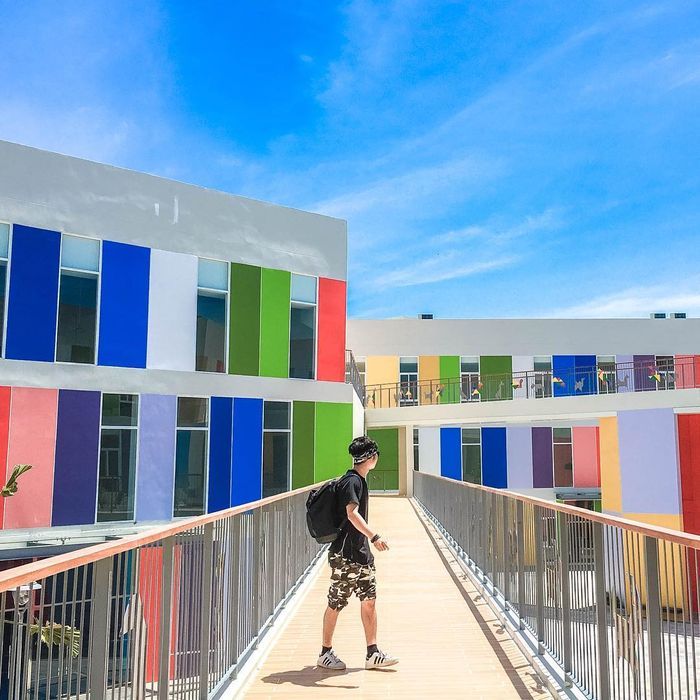 Các mặt đứng được trang trí bằng hình các con thú xoay quanh công trình với những gam màu nổi bật. Tất cả các chi tiết dù là nhỏ nhất trong khu nhà thiếu nhi này đều được thiết kế và trang trí hết sức công phu, tinh xảo và đầy màu sắc cực tráng lệ và mang dáng dấp của nét kiến trúc hiện đại này khiến nhiều người thích thú… Với lối thiết kế khá đặc biệt theo ý tưởng trò xếp hình Tangram, bạn sẽ thoải mái tạo dáng mà không sợ phô dáng hay ngại background không chất.