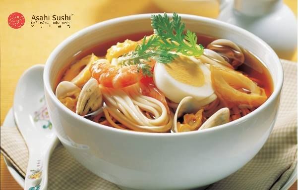 Thực đơn ở Nhà Hàng Nhật Asahi đa dạng với nhiều lựa chọn từ sushi, sashimi, tempura đến các loại mì. Mì ở đây cũng rất phong phú, từ mì lạnh như Soba lạnh, Udon lạnh, Chasoba lạnh đến mì nóng như Udon, Shiso nóng, Somen nóng. Quán mang đến trải nghiệm nhà hàng chất lượng với giá bình dân, phù hợp với mọi đối tượng khách hàng từ sinh viên đến người đi làm.