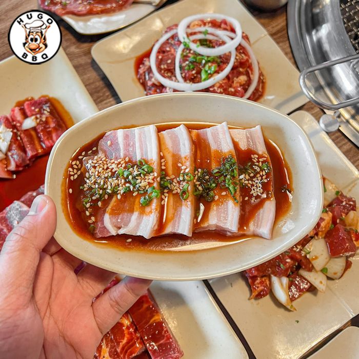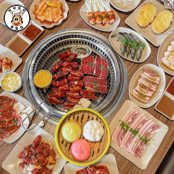 Hugo BBQ nổi bật với thịt nướng đa dạng: nò Mỹ, vai bò Úc, heo Hàn Quốc, giò bò nấm hương, hải sản nướng. Đặc biệt, những món lẩu Thái, kim chi độc đáo cũng được đưa vào thực đơn. Chill hết nấc và thưởng thức ẩm thực Hàn Quốc tại Hugo BBQ.