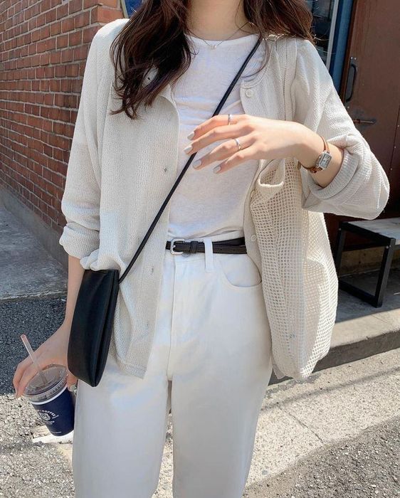 Not only is the cardigan easy to wear, but pairing it with a crop top and jeans creates a feminine and sophisticated yet trendy look that remains popular over time. For petite women, this outfit is a must-try, as it helps elongate the silhouette effortlessly.
