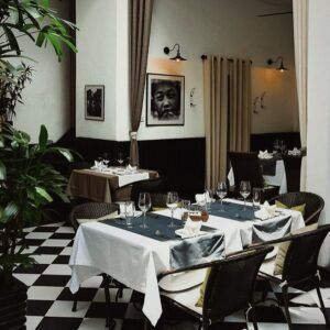 Every evening, the restaurant offers high-quality set meals. Diners will enjoy typical French dishes such as sautéed mushrooms with potatoes, foie gras pate, lobster soup with chives, grilled sea bass with winter greens. The dishes are paired with French wines and strong cocktails.