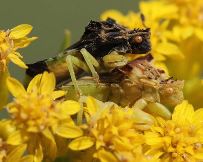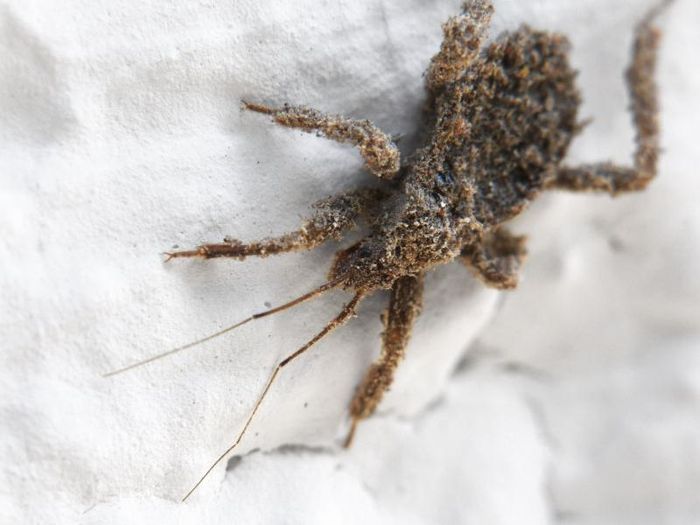 Chúng lừa dối cả con mồi và kẻ thù bằng cách mang trên lưng những xác côn trùng khác, tạo thành một đống xác lớn hơn cả cơ thể của chúng. Khi kẻ săn mồi hoặc kẻ thù tiếp cận, chúng bỏ lại 'ba lô' và tận dụng cơ hội để trốn thoát.
