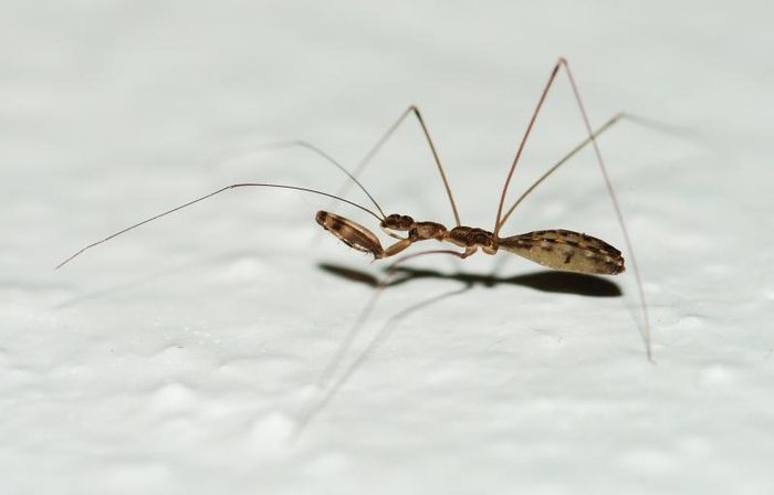 Bọ “Chân Dài” thuộc phân họ Emesinae của họ Reduviidae. Chúng có chân dài và hình dáng giống que tăm, với hai chi trước giống bọ ngựa. Bằng cách sử dụng tỉ lệ cơ thể và chân nhẹ, chúng di chuyển trên mạng nhện mà không bị phát hiện. Bọ “Chân Dài” thường lẻn vào mạng nhện, đánh cắp mồi và thoát ra mà không bị phát hiện.