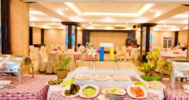 Trong khách sạn, quý khách sẽ có dịp thưởng thức những món ăn Âu – Á ngon miệng, đặc biệt là hải sản tươi ngon đến lòng du khách. Với không gian rộng rãi, chứa đến 150 người, nhà hàng còn là địa điểm lý tưởng cho các sự kiện đặc biệt như liên hoan, sinh nhật,…