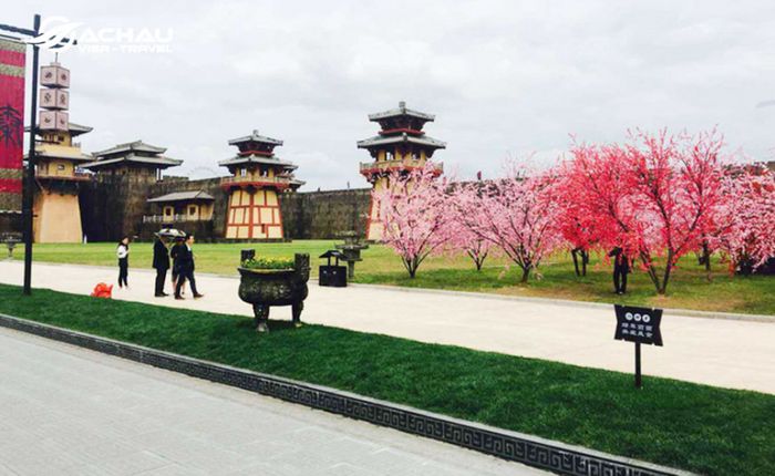 Khu quay phim Đôn Hoàng tọa lạc ở phía Tây tỉnh Cam Túc. Hợp tác giữa Trung và Nhật, đây là một phim trường cổ trang nổi tiếng, nơi có khung cảnh thiên nhiên đa dạng, tuyệt vời, với đồng cỏ và đồi hoa nở rộ trên bầu trời xanh thẳm, chỉ cần bước chân đến là khó lòng rời xa. Ngoài cảnh đẹp tự nhiên, cuộc sống hàng ngày và tập tục của người dân phía Tây Cam Túc cũng được tái hiện tại đây. Ai đã xem bộ phim nổi tiếng 'Chiếm Hạm' của Trung Quốc sẽ bất ngờ khi biết rằng nó được quay trên phim trường Đôn Hoàng tuyệt vời này.