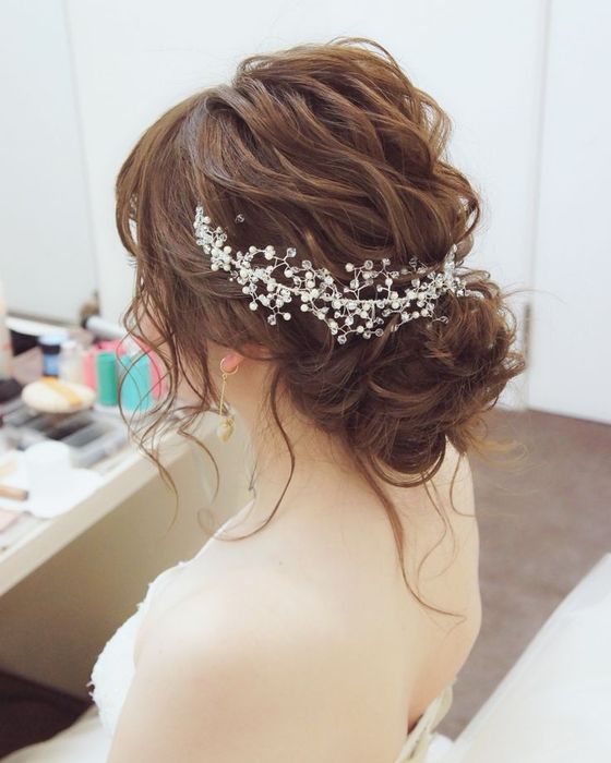 Ý tưởng về kiểu tóc cô dâu đẹp kèm phụ kiện không hề mới, nhưng vẫn là sự lựa chọn của nhiều thế hệ phụ nữ. Trên nền tóc đơn giản, chỉ cần thêm chiếc băng cài sang trọng cũng đủ làm tôn lên vẻ xinh tươi, rạng rỡ cho nàng dâu.