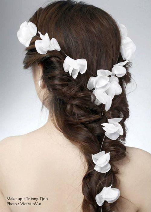 Với những cô dâu muốn có một đám cưới như cổ tích, việc đeo vòng hoa trên đầu sẽ giúp hoàn thiện vẻ ngoại hình mơ mộng. Với những bông hoa trắng muốt, nhỏ xinh, vòng hoa sẽ tạo cho cô dâu một hình ảnh nền nã và đẹp mắt. Nhờ đó, nàng dâu không cần phải làm những kiểu tóc phức tạp mà vẫn tỏa sáng trong ngày trọng đại của mình.
