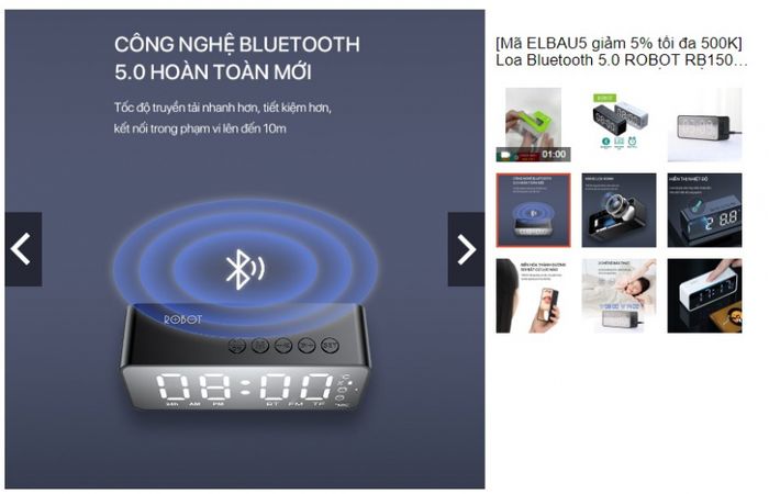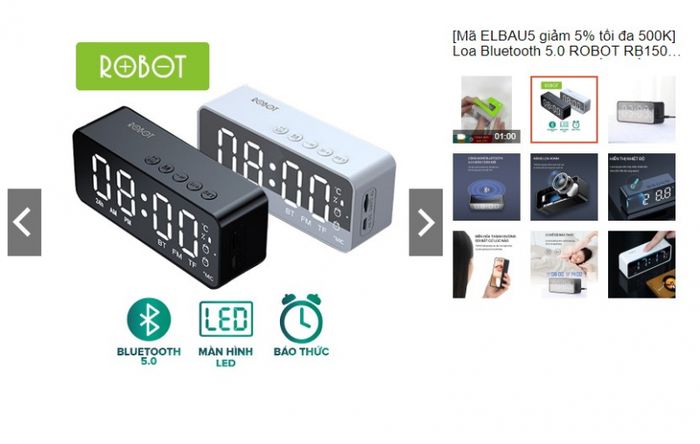 Link mua hàng: shopee.vn/-Mã-ELBAU5-giảm-5-tối-đa-500K-Loa-Bluetooth-5.0-ROBOT-RB150-Màn-Hình-LED-Kiêm-Đồng-Hồ-Báo-Thức-Nghe-FM-Thẻ-Nhớ-i.218993976.6965377410