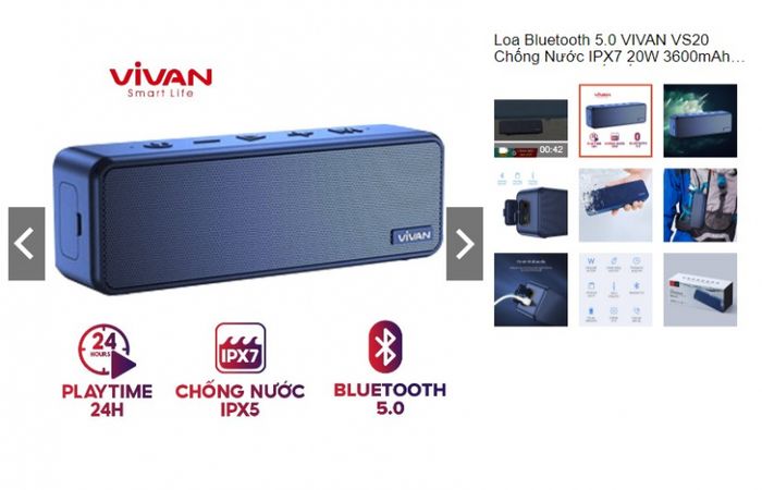 Link mua hàng: shopee.vn/Loa-Bluetooth-5.0-VIVAN-VS20-Chống-Nước-IPX7-20W-3600mAh-Playtime-24H-kết-nối-thẻ-nhớ-AUX-Blue-tooth-tiện-lợi-nhỏ-gọn-i.211058136.7443507745