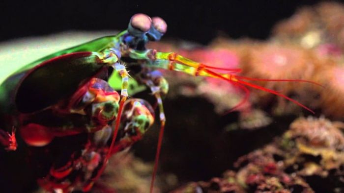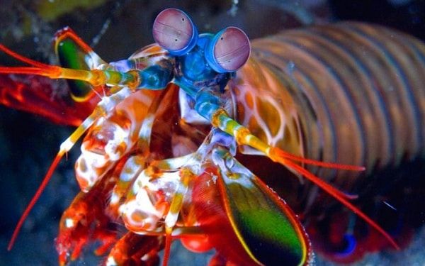 Đôi mắt của tôm tít được các nhà khoa học cho rằng còn giống với vệ tinh hơn cả con người. Cụ thể thì loài này có thể cảm thụ được tới 16 màu sắc khác nhau, còn con người chỉ có 3 màu. Chúng cũng có thể nhìn được tia cực tím và ánh sáng phân cực nữa. Nhờ có thị lực nhạy bén nên tôm tít cũng thường giao tiếp và ra ký hiệu cho nhau bằng mắt để tránh được sự dòm ngó của kẻ săn mồi.