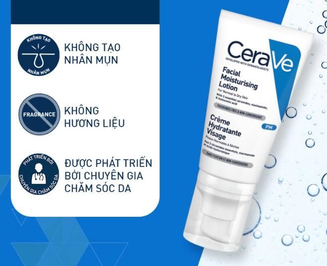 - CeraVe Facial Moisturising Lotion PM giúp dưỡng ẩm và duy trì hàng rào bảo vệ da.