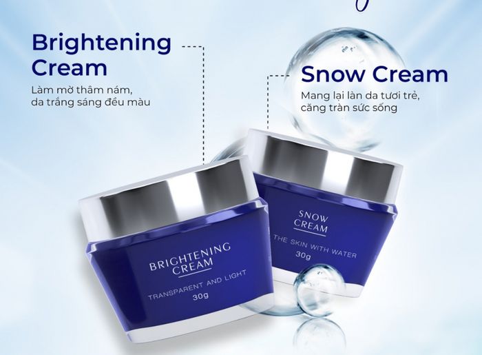 - Kem dưỡng ẩm da Snow Cream: Dưỡng ẩm hiệu quả, an toàn cho làn da nhạy cảm. Tăng cường độ căng bóng, làm da đều màu và căng bóng hơn.